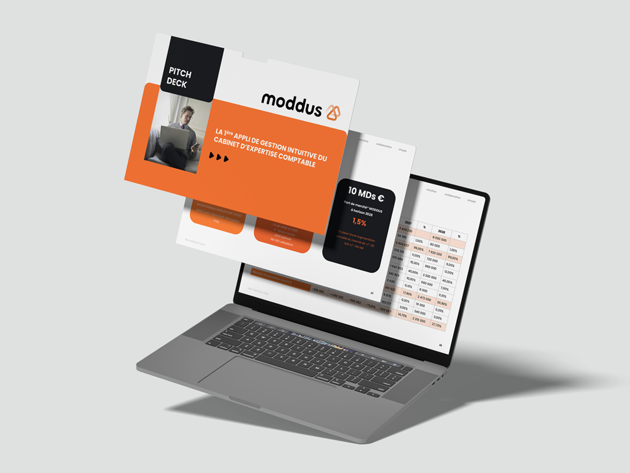 Developed the complete brand identity and a compelling pitch deck for Moddus, a groundbreaking French management app connecting firms, employees, and clients.
